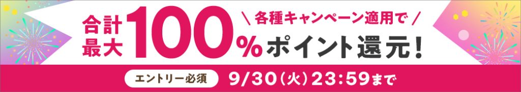 なお、9月30日(火)23:59までの期間、エントリー必須のポイント還元キャンペーンを実施いたします。
