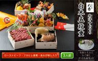 ふるさと納税 正月 白木五段重 正月 和風おせち 洋風おせち おせち ローストビーフ 松葉かに甲羅盛り入り 3人前 京都府 福知山市