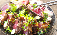 藁焼効果で生臭くなく女性にも高評価をいただいている藁焼鰹タタキです。