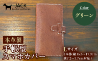 【内容】ハンドメイドのヌメ革製手帳型スマホカバー。