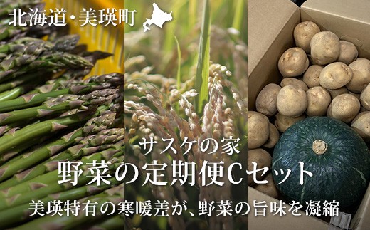 【先行予約】 野菜 定期便 C 3回便 <令和8年産 > セット 詰め合わせ サスケの家 グリーンアスパラ2kg(L~2L)、秋野菜(かぼちゃ1~2個・じゃがいも 約10kg)・米(ななつぼし)10kg[062-03]