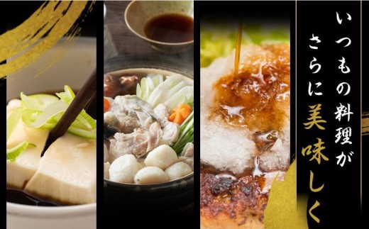 天然のだし(かつお節、しいたけ、にぼし、昆布)をブレンドした香り高い味付ぽんずです。