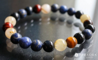 落ち着いた重厚感のあるデザインで、年齢を問わず男女共に好まれる配色となっていますので、金運パワーストーンでありながらさりげなく身につけることができます。