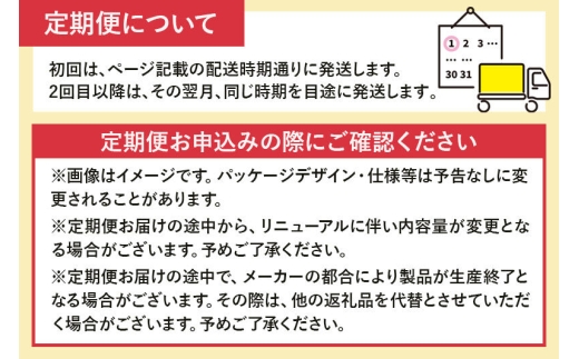 ※定期便お届けの途中で、メーカーの都合により製品が生産終了となる場合がございます。その際は、他の返礼品を代替とさせていただく場合がございます。予めご了承ください。