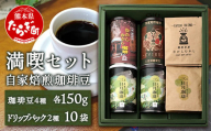 自家焙煎 珈琲豆 満喫セット 150g×4缶 (豆/粉が選べる!) + ドリップパック 10パック セット 099-0005