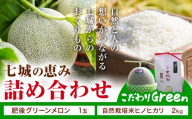 - 七城の恵み 詰め合わせ こだわりRed 自然栽培米 ヒノヒカリ 2kg 春風レッド メロン 1玉 株式会社七城の恵み《5月上旬-5月下旬に出荷予定》熊本県 菊池市 米 メロン ひのひかり つるたファーム