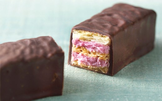 チョコレートのおいしさを引き出すため、一口目からチョコレートの香りが広がるように、空気の層を抱いたミルフィーユを口当たりの良いコーティングチョコレートで包み込んでいます。また、それぞれのチョコレートのおいしさが際立つフィリングを、何十通りもの組み合わせの中から試行錯誤のすえに選びました。
