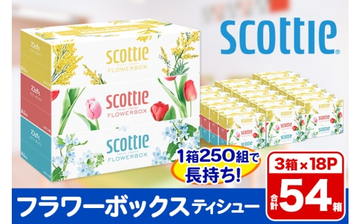 • ティッシュペーパー スコッティ フラワーボックス250組 54箱(3箱×18パック)  日用品