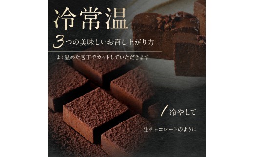 よく温めた包丁でカットしていただき、冷やして生チョコレートの感覚で…常温でテリーヌショコラとして…電子レンジで軽く温めてとろりとしたフォンダンショコラのように…
