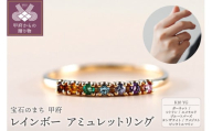 7石のレインボーカラーストーンのアミュレット(お守り)リング。ガーネット、シトリン、エメラルド、ブルートパーズ、タンザナイト、アメジスト、ピンクトルマリンをセレクトしました。虹色のカラーが指元を明るく華やかに彩ります。