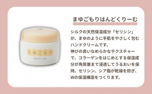 繭からとれる保湿成分「セリシン」を配合して、肌や髪をしっとりと包み込みます。