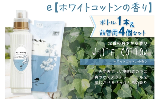 - 《定期便5ヶ月》ノンシリコン 柔軟剤 マイランドリー (ボトル1本+詰替用4個セット)【ホワイトコットンの香り】