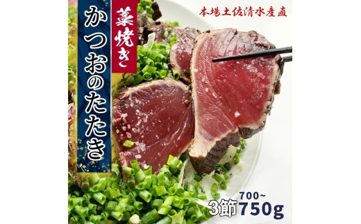 - 藁焼き かつおのたたき 冷凍 3節 700g~750g(5人~6人前) 特製タレ 室戸海洋深層水塩 塩たたき 一本釣り 鰹 土佐 送料無料 お中元 お歳暮【R01557】