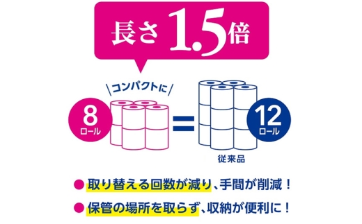 ●8ロールで12ロール分の長さ(※従来品スコッティ フラワーパック12ロールとの比較)。