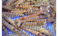 活きたままの車海老を氷水で〆たあと、真空パック冷凍したものをお届けします。