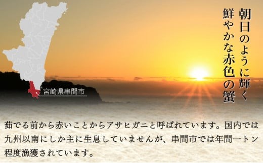 テレビ番組で紹介された、日本では希少な国産アサヒガニ! エビのようなカニのような食感で、そのお味噌は濃厚。 蒸していただくと、カニ本来の素材の味をご堪能いただけます。 また、グラタンやお味噌汁、パスタ、ブイヤベースなどさまざまなお料理でもお楽しみください。 【提供】 合同会社Houryoumaru 串間市大字大納