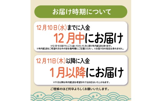 ※12月10日までにご入金いただいた方に限り年内配送を承ります