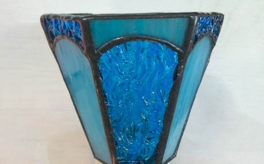 - 【受注生産】 おやすみ ランプ (六面体) ステンドグラス 水色 / 照明 ライト ランプ ステンドグラス / 大村市 / ステンドグラス工房ウォークオン [ACZT003]