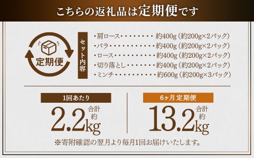 • JS-306 【6ヶ月定期便】鹿児島県産黒豚 5種詰合せ(約2.2kg×6回)