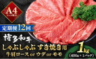 <毎月定期便>訳あり!<A4~A5>博多和牛赤身霜降りしゃぶしゃぶすき焼き用1.2kg全12回【4054458】