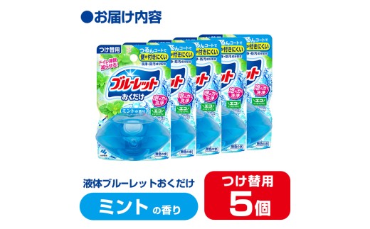- 液体ブルーレットおくだけ ミントの香り 70ml つけ替用 5個 無色の水 小林製薬 ブルーレット トイレ用合成洗剤 トイレ掃除 洗剤 芳香剤 詰め替え 詰替え 付け替え 付替え【CGC】ta445