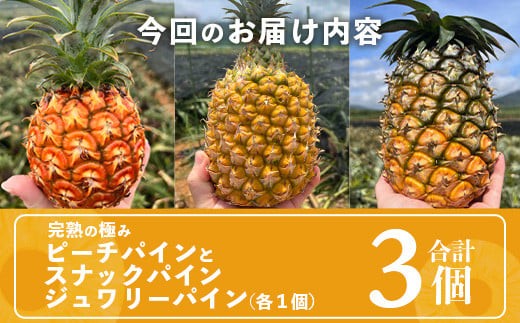 《2026年4月~6月順次発送》【先行予約】完熟の極 石垣島産パイナップル 超大満足の食べ比べセット スナック&ピーチ&ジュワリー3種の食べ比べセット【 沖縄 石垣 ピーチ スナック ジュワリー パイン パイナップル 完熟 セット フルーツ デザート 食べ比べ 3種 】 TF-34