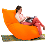 体にフィットするビーズソファを屋外に。横向きにすれば3人掛けのソファにもなります。