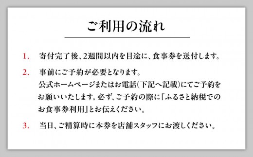 ご予約の際に『ふるさと納税でのお食事券利用』とお伝えください。