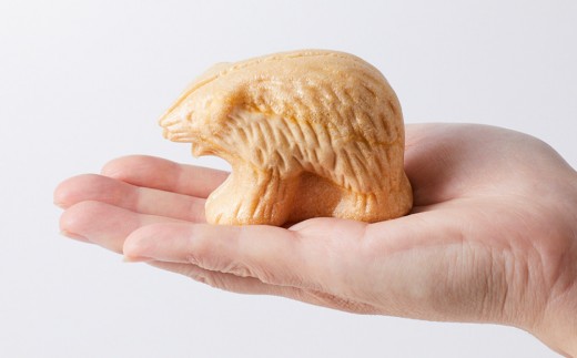 八雲町木彫り熊発祥100周年を記念して作成した木彫り熊モナカは、木の実を食べる熊から着想を得て、クルミと某熊のキャラクターの好物ハチミツを使用。