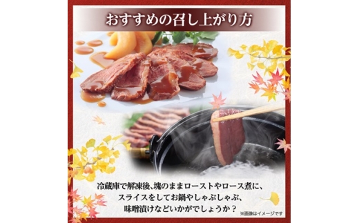 冷蔵庫で解凍後、塊のままローストやロース煮に、スライスをしてお鍋やしゃぶしゃぶ、味噌漬けなどいかがでしょうか?