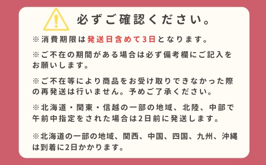 ※生ものですので、ご不在の期間がある場合は必ず備考欄にご記入をお願いします。