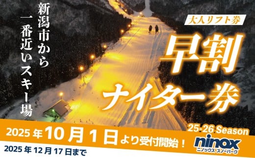 早割 リフト券 ナイター券 旅行 スキー アウトドア スノーボード リフト スポーツ ウィンタースポーツ 新潟 雪 冬 新発田 観光 ニノックス ninox002_01