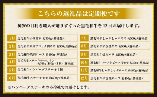 - 柿安本店 柿安黒毛和牛食べくらべセット【定期便12ヶ月】 国産 牛肉 赤身 厳選 上質 すき焼 焼肉 サーロインステーキ ローストビーフ しゃぶしゃぶ ロース モモ ブロック肉 バラ ハンバーグ 小間切れ 逸品 おすすめ グルメ f_07