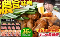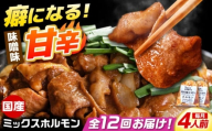 【6回定期便】岐阜県産豚もつの鉄板焼き「元祖みたけとんちゃん」甘辛&ピリ辛 各4袋(16人前) / モツ もつ 白もつ ホルモン / 御嵩町 / 藤よし [AVAA016]