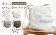 - 【オリーブ×ブロンズ】【名入れ可能!】ワッフル素材 ビッグリボン キッズ ショルダーバッグ【coco plus an factory】[OCR061]