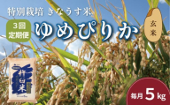 • 【無洗米3ヶ月定期便】特別栽培「きなうす米」ゆめぴりか5kg×3回 J029