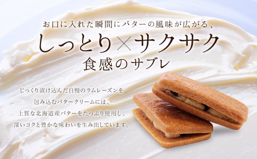 しっとりとしたクッキー生地で、自家製ラム酒漬けレーズン入りのクリームをサンドしました。