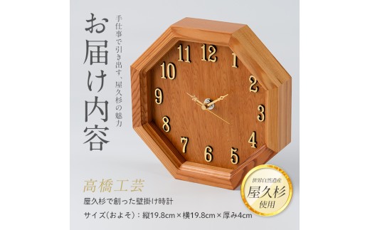 【屋久杉で創った】壁掛け時計(高橋工芸/IB074-002) 工芸品 とけい 時計 壁掛 アナログ アナログ時計 シック おしゃれ シンプル 屋久杉 杉 木 木工 木材 インテリア 装飾 家 リビング オリジナル 一点もの 手づくり てづくり 手作り 木目 手作業 職人 工芸 鹿児島 自然遺産