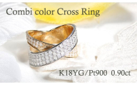 K18イエローゴールドとプラチナ900を交差させた幅広モチーフに、トータル0.9ctの上質なダイヤモンドをパヴェセッティング。