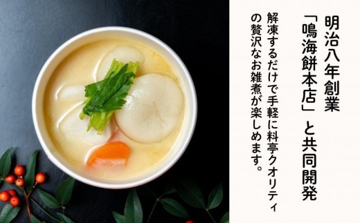 三間間口の小さな店から始まり、代々受け継がれてきた職人の技と伝統の味。その誇り高きお雑煮の味を全国の皆さまにお届けしたいという想いから、CHANTMEALと共同開発した特別な逸品が誕生しました。