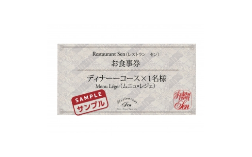 2010年9月に千代田区九段南に開業したフランス料理店「レストラン・セン」のディナーコース「ムニュ・レジェ」1名様の食事券です。