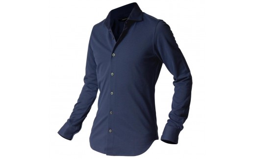 DJS-002 decollouomo メンズドレスシャツ長袖(生地/コンコルド)ネイビー/Mサイズ
