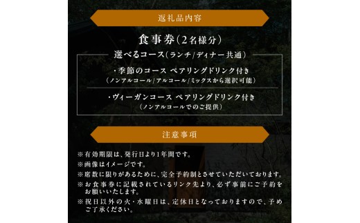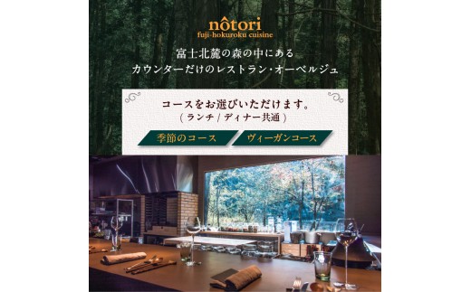 お食事券 2名様 ランチ ディナー 季節のコース ヴィーガンコース ペアリングドリンク付き 完全予約 レストラン オーベルジュノウトリ nôtori 富士北麓 キュイジーヌ フレンチ 送料無料 山梨県 忍野村