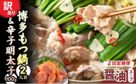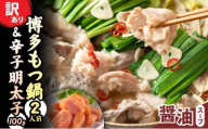 - 明太子 もつ鍋 訳あり セット 博多 醤油 牛もつ鍋 2人前 辛子明太子 切子 100g 1個 [木村食品 福岡県 筑紫野市 21760913] 牛もつ めんたいこ