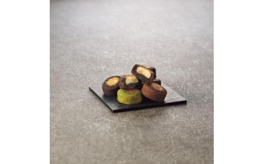 コロンとした丸型のフィナンシェ生地は、抹茶・ほうじ茶・和紅茶の3種類の茶葉を選定し練りこんでいます。