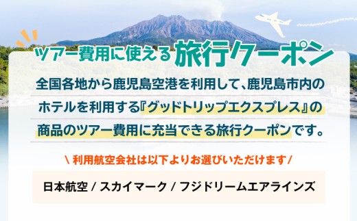 全国各地から鹿児島空港を利用して、鹿児島市内のホテルを利用する『グッドトリップエクスプレス』の商品のツアー費用に充当できる旅行クーポンです。