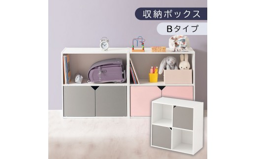 【完成品でお届け】収納ボックス〔Bタイプ〕(グレー×ホワイト)収納棚 扉付き キャビネット ラック 棚 カラーボックス スリム 2段 可動棚 本棚 収納家具 リビング LKANET300248-B-GY