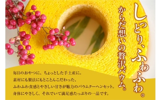 しっとりふわふわに焼き上げたこだわり卵のバウムクーヘン3種セット。