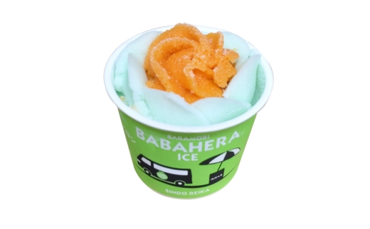 男鹿市特産品の若美メロンの芳醇な香りと味、果汁・果肉を使用したメロンアイス3個とババヘラバラ盛りアイス3個の詰合せセットです。
