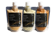 飛騨こうじの野菜麹のセットです。 【にんにく】 塩は花藻塩(瀬戸内海水塩藻塩製法塩)を使用。 にんにくの旨味と風味がたっぷり! 【たまねぎ】 塩麹をつくる際に水を加えますが、その水を野菜のたまねぎに置き換えてみました。 玉ねぎはすりつぶして入っていますのでたまねぎの旨味がたっぷり。 和風コンソメといってもいいくらい出汁がよく出ています。 【しょうが】 しょうがをすりつぶして塩麹に入れた万能調味料です。 濃厚な旨味(出汁)を感じる万能調味料です。 料理の際、塩の代わりに使っていただくとプラス自然な優しい旨味が出ます。 下味をつける漬け込みに使うとより効果的。ドレッシングの素にもなります。 【飛騨こうじ織勢】 2022年開業の出来立てホヤホヤの小さな麹屋。 店主はあふれ出す麹愛が止まらない一発酵マニアでしたが、麹に関するいろいろなワークショップを主催する中で「麹って何?」とか「麹ってなんか体によさそうだけど、どうやって使うの?」といったお客様の疑問や要望をお聞きする度になんとか日本が世界に誇るスーパーフードである麹のよさを教えていきたい、広めていきたいと一念発起。 麹の使いこなしも教える麹屋を開業しよう!と自宅である築145年の古民家を自ら改装。 オーダーメイドのクラフト麹と日本各地の麹発酵食品を厳選販売する実店舗+使いこなし教室ができる広めの厨房があるちょっとマニアックな麹屋です。 ふるさと納税を通じて全国のお客様にこの熱い思いと飛騨の麹をお届けします。 ■注目キーワード 米麹 米こうじ 生麹 発酵 野菜麹 野菜こうじ たまねぎ麹 しょうが麹 にんにく麹 万能調味料